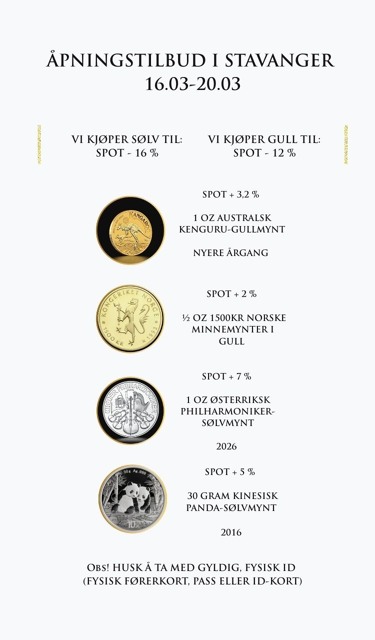 Nei, du har ikke angrerett på kjøp av gull- eller sølvmynter. Gull og sølv er finansielle eiendeler, prisen går opp og ned hele tiden, og det er ikke noe vi kan kontrollere. Derfor er denne typen varer unntatt fra angrerett etter angrerettloven § 22: