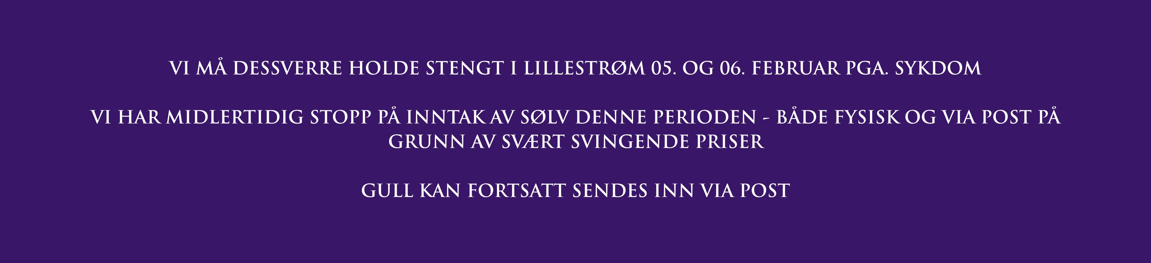 VI HOLDER STENGT 05. OG 06. FEBRUAR PGA. SYKDOM MIDLERTIDIG STOPP PÅ INNTAK AV SØLV-3